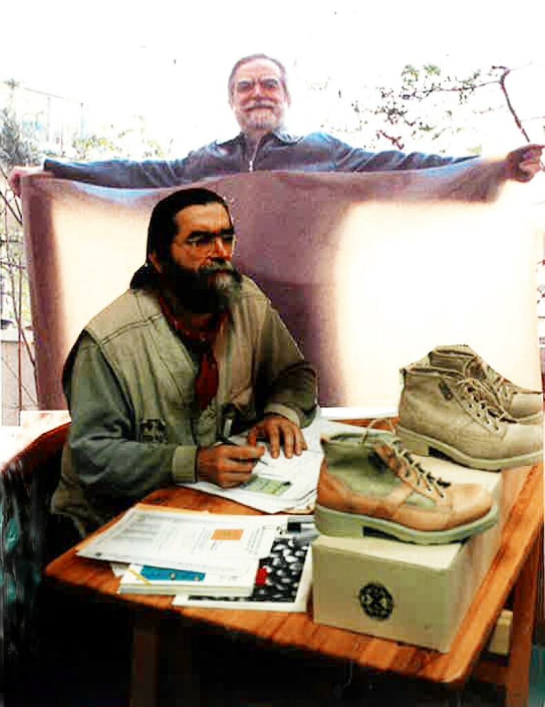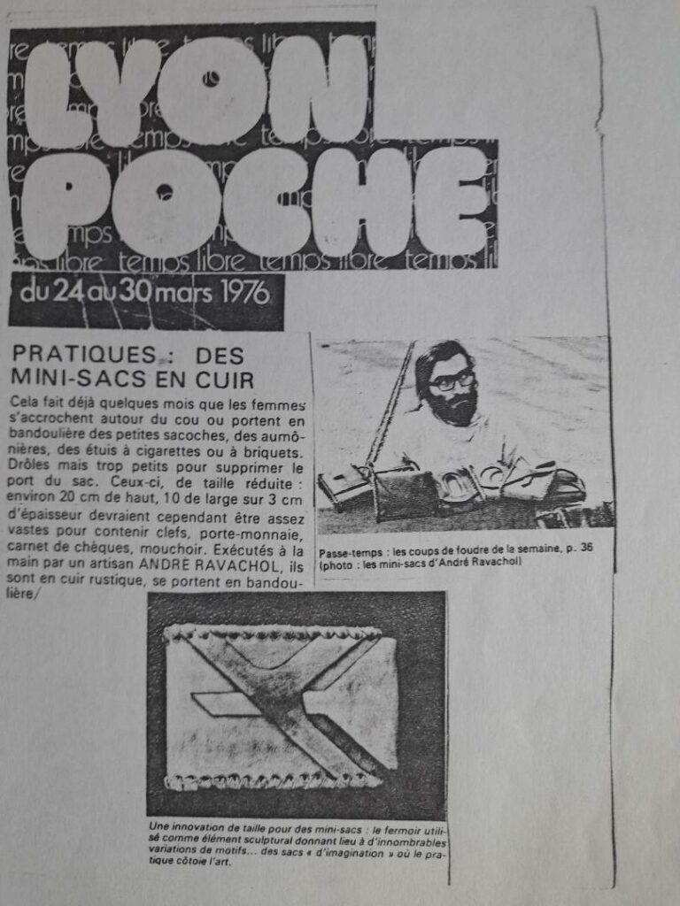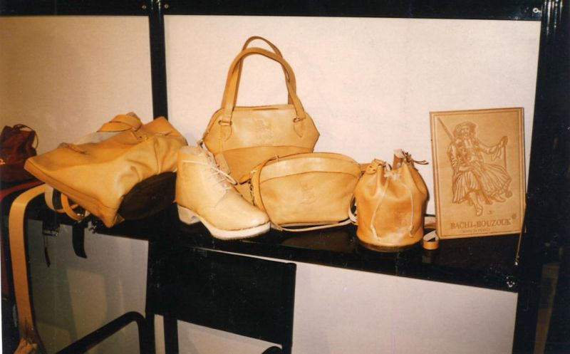 Ensuite , il faut attendre 1991 avec une création radicale pour le secteur maroquinier : le montage sur un socle de bois par un sabotier (de Roanne) d’un corps de sac composé en cuir tanné végétal que je laissais dans son état brut . (voir la photo de l’en tête)